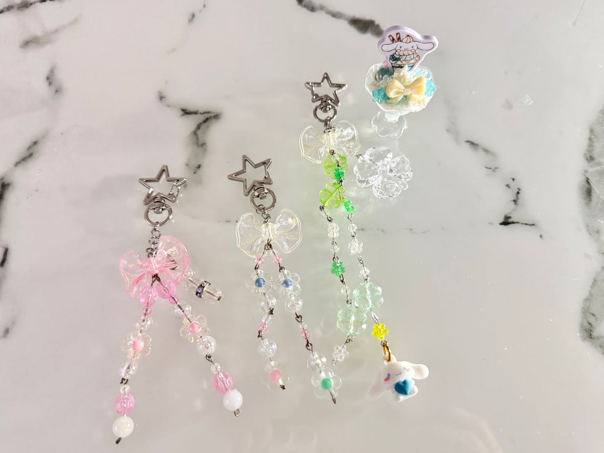 完成したチャームをかざってみました🍀🌼🎀めっちゃかわいくないですか?手作りって世界にひとつだけの特別感があってほんと楽しい!!見てるだけでハッピーな気分になれるお気に入りチャームになりました🩷