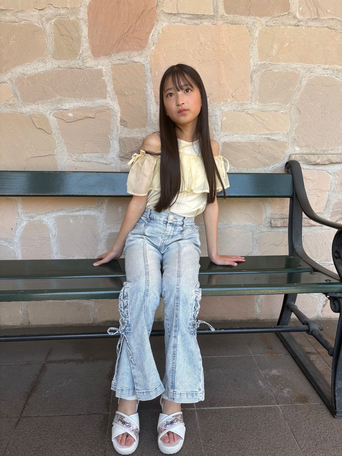 ボトムスはデニムで、肩を出した分足は肌見せ少な目で、体温調節ばっちり👍