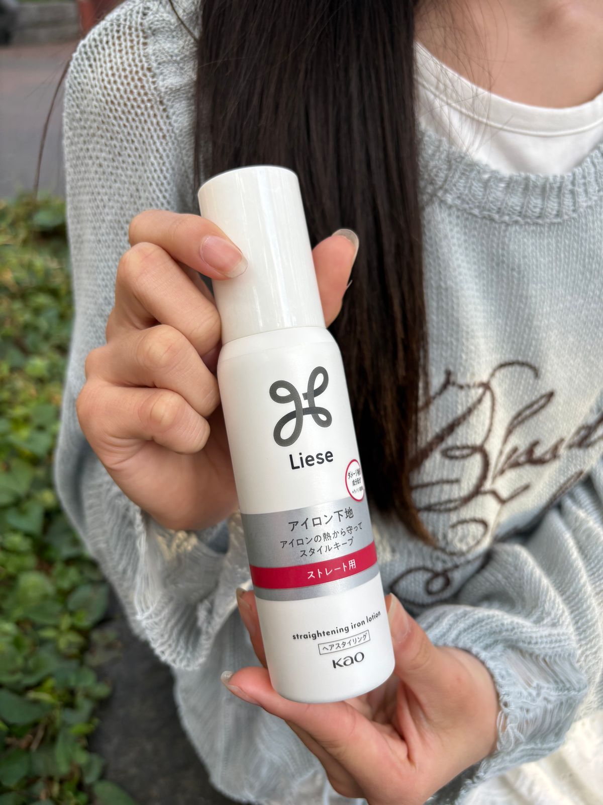 次におすすめなのが「リーゼのアイロン下地(ストレート用)」です。熱から髪を守りながら、ストレートをしっかりキープしてくれます!アイロンの滑りもよくなって、ナチュラルでツヤのある仕上がりになるので、毎日のヘアセットに欠かせません♡