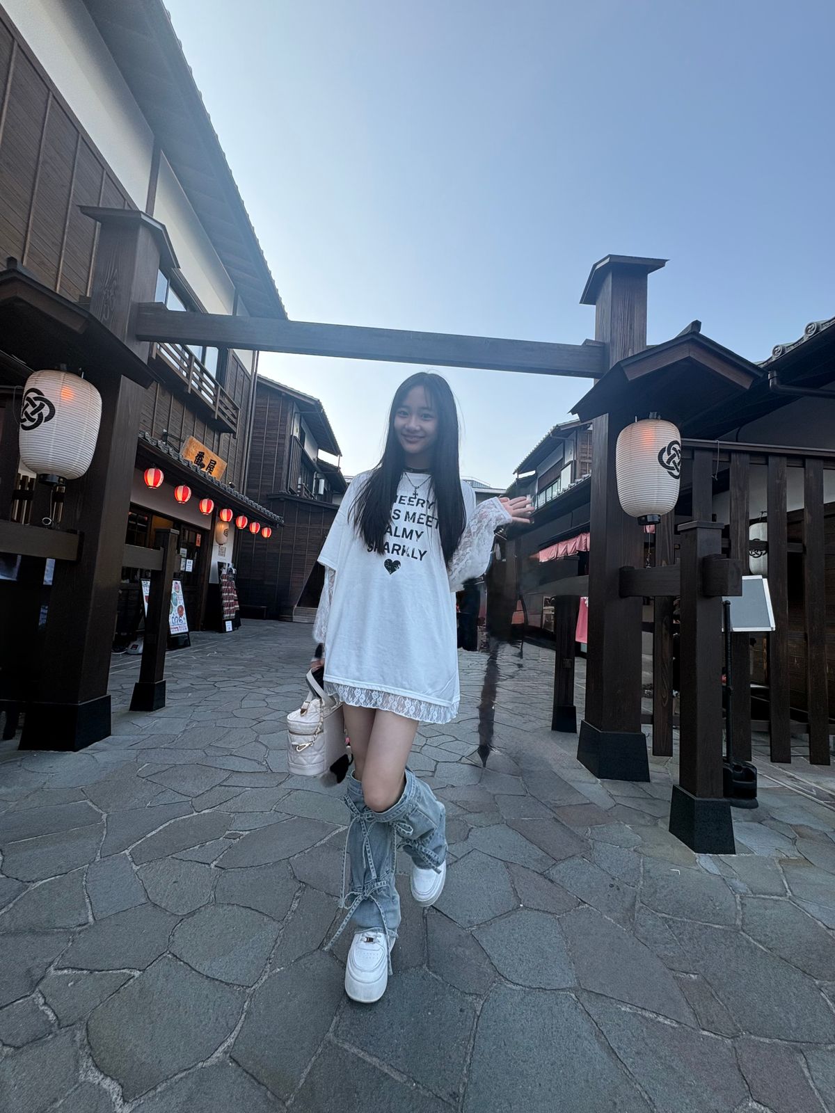 美脚デニム×フリルブラウスで春のきれいめカジュアル♪【プチ㋲私服スナップ/小沢 ちひな】