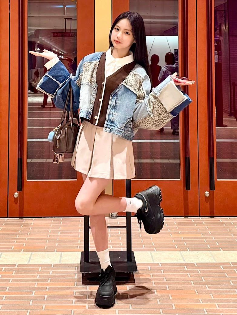 この時のコーデはママと兼用で着ようって買ってもらったetsintaのGジャンが主役だよ✨ジーンズをリメイクしたようなデザインで👖ポケットが逆さまについてるの🤣ポケットツカエナイ🤣
