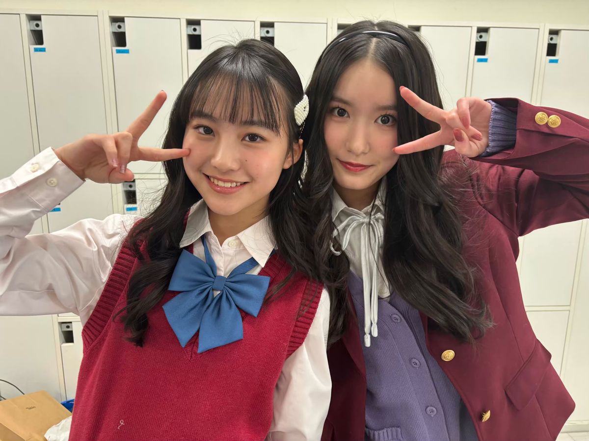 韓国ドラマのセレブ校っぽい制服のありさ&フジリコ♪ 二人とも深い赤が似合う〜!