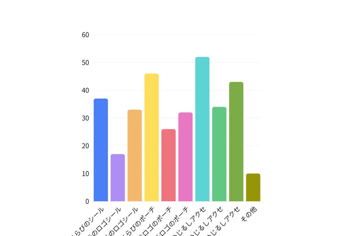 「めじるしアクセ」や「ポーチ」など、実際に使えるアイテムの人気が高い結果となりました。中でも「にこらび」デザインは全体的に支持が高く、ニコラ・ニコ☆プチのオリジナルキャラクターとしての特別感も理由のひとつと考えられます。