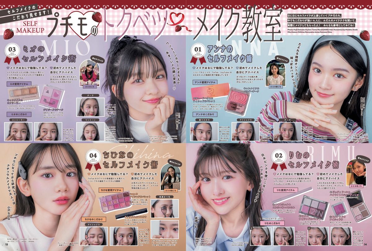 アンナ、りむ、ミオ、ちひなの、セルフメイクが上手なプチ㋲4名が教えるスペシャルメイク教室が開講〜♡ 推しコスメやメイクのポイントも紹介してくれたから、今度の休日にマネしてみるのはどうかな♪